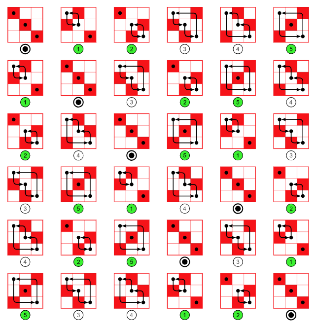 Таким образом, выше в примерах первая перестановка чётная (число инверсий 8), а вторая нечётная (число инверсий 15).