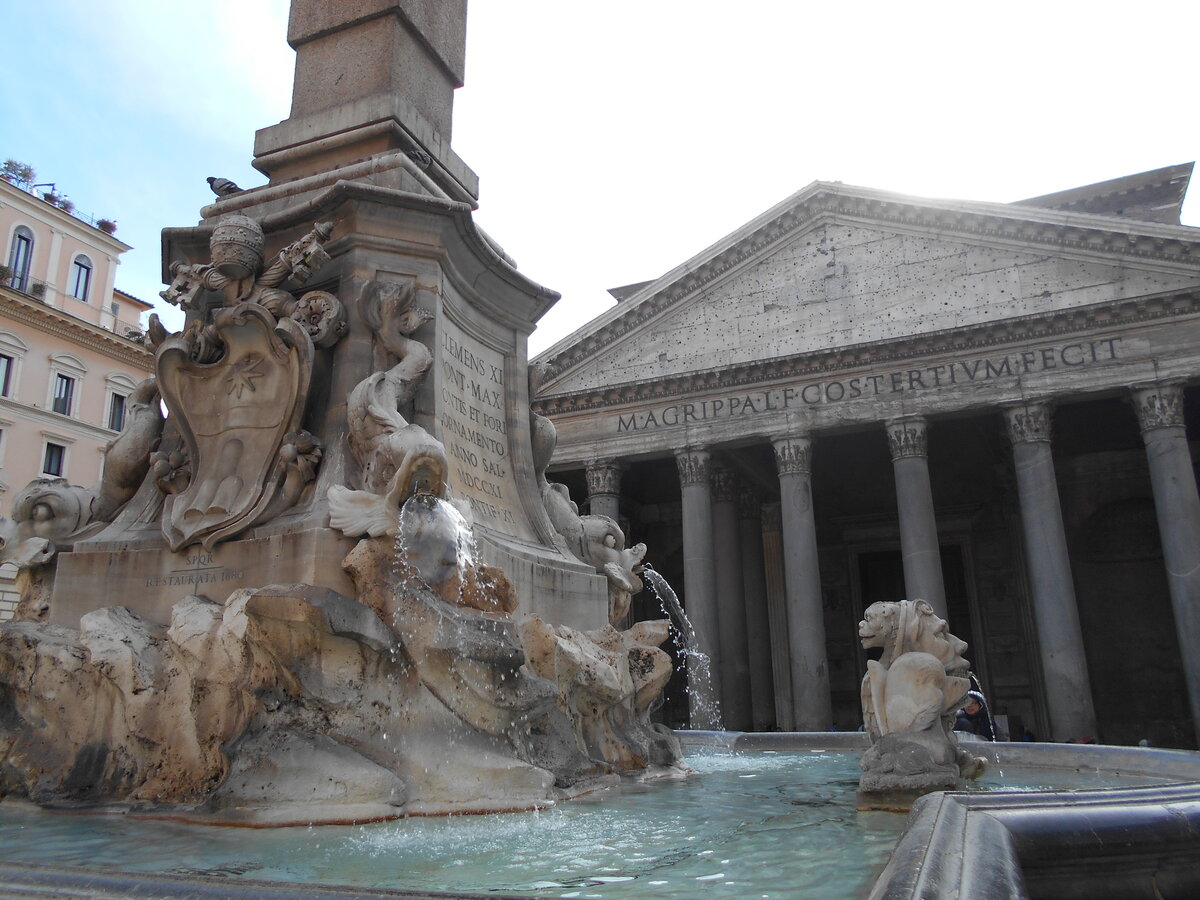 Красивейшая площадь Рима - площадь Ротонды славится не только величественным древним Пантеоном, архитектурным шедевром античности. Центр площади занимает чудесный фонтан, украшенный гротескными масками, дельфинами, драконами и гербами. Первоначальный проект фонтана был разработан известным архитектором Джакомо делла Порта в 1575 году, в дальнейшем фонтан неоднократно меняли и улучшали. В 1711 году его увенчали обелиском, привезенным в Рим из Древнего Египта в I веке н.э. императором Домицианом. Обелиск был изготовлен в XIII веке до н.э. (невообразимая древность!) во времена правления фараона Рамзеса II-го. Высота обелиска более 6 метров, он украшен изображениями фараона и хвалебными надписями. К фонтану ведут ступеньки, на которых так приятно посидеть и отдохнуть, наслаждаясь особенной атмосферой и видом загадочного древнего храма. Площадь всегда многолюдна, вокруг множество ресторанчиков. Играют и поют уличные музыканты, рисуют художники. Потрясающее место, обладающее особой притягат