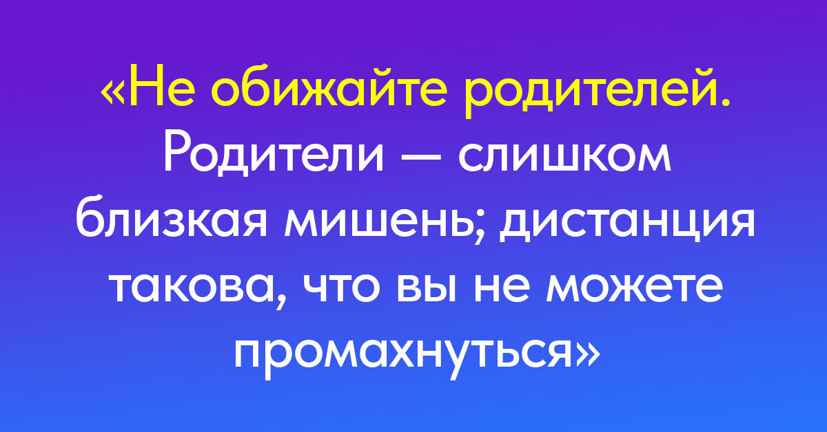 «Не обижайте родителей. Родители — слишком близкая мишень; дистанция такова, что вы не можете промахнуться».