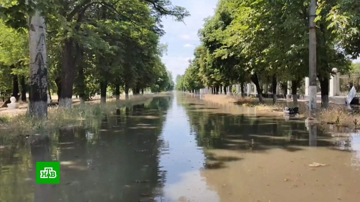 [ Смотреть видео на сайте НТВ ] В Госдуме призвали созвать Совбез ООН из-за подрыва Каховской ГЭС Украиной. О планах Киева по разрушению станции Россия предупреждала генсека организации Антониу Гутерриша еще в октябре прошлого года, но для предотвращения катастрофы ООН ничего так и не предприняла. Рукотворного цунами, если именно на него рассчитывали стратеги ВСУ, не произошло. Не было волны, напрочь смывающей укрепления и окопы на левом берегу Днепра. Тем не менее вода прибывает. К полудню она затопила некоторые острова и низины южнее Каховской ГЭС и плескалась у подъездов зданий в центре Новой Каховки. Была объявлена эвакуация. Иван Павленко, начальник ГУ МЧС по Херсонской области: «Силы и средства работают на местах, органы муниципального управления, МЧС России. Подъем воды до 72 часов прогнозируется. Потом вода пойдет на спад, и мы приступим к ликвидации последствий». В зоне риска множество прибрежных деревень, уже подтоплено как минимум 600 домов. Владимир Леонтьев, глава админист
