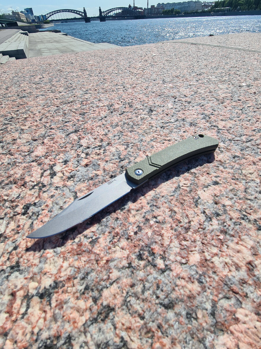 Обладателем данного ножа я стал еще в феврале 2023 года, купив его по скидке на Ozon за 2500р. Итак, что же я получил за столь скромную сумму денег. Если честно, то я был почти уверен, что ко мне приедет шлак, который будет кривой, косой, с пластилиновой сталью и вообще в скором времени развалится. Но нет, приехал вполне качественный нож, крепкий, с честной AUS-8 на клинке. Конструкция ножа проста как три копейки. Две толстенные плашки G-10, которые придают этому ножу прочность как у Nokia 3310, между ними вставлен клинок и пружина slip joint и стянуто всё это двумя винтами.
