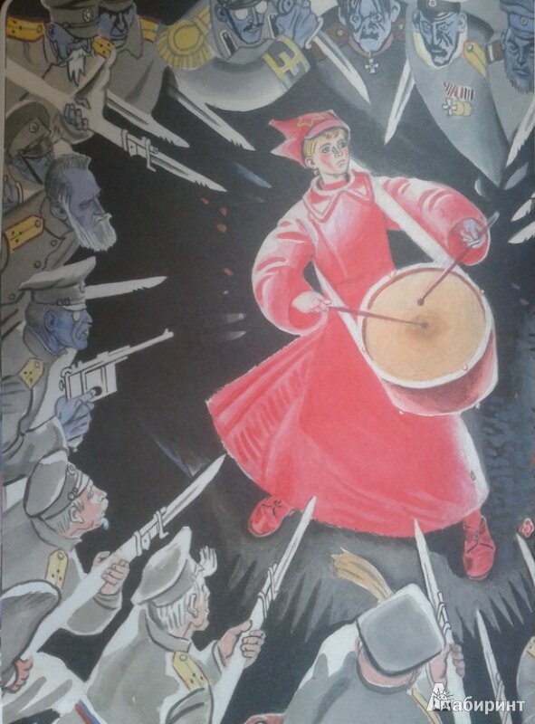 Дата чтения: Автор: С. Могилевская. Главные герои: Ларик, мальчик, барабан. Краткое содержание произведения: На стене висел старый барабан. Бабушка с дедушкой рядом повесили новый. Их внук ударил по этому старому барабану и узнал его историю. Инструмент принадлежал Ларику - брату бабушки. Он пришел записываться в отряд партизан, но не подходил по возрасту. Тогда мальчик заиграл на барабане и его взяли в отряд. Бойцам веселее шагалось фронтовыми дорогами под звонкую дробь барабана. Однажды Ларик с отрядом остановились в лесу воле его родного города, паренек отпросился повидать родных. Когда шел лесом, то услышал, что немцы окружают его отряд. Ларик сообразил, что не успеет добежать до своих и предупредить о надвигающейся опасности. Тогда он достал палочки и заиграл на барабане так громко, как только смог. Вражеская пуля попала ему в висок, но он успел предупредить своих. Вот такую историю поведал маленькому мальчику старый военный барабан. Благодарю Вас за ваши лайки и комментарии!
