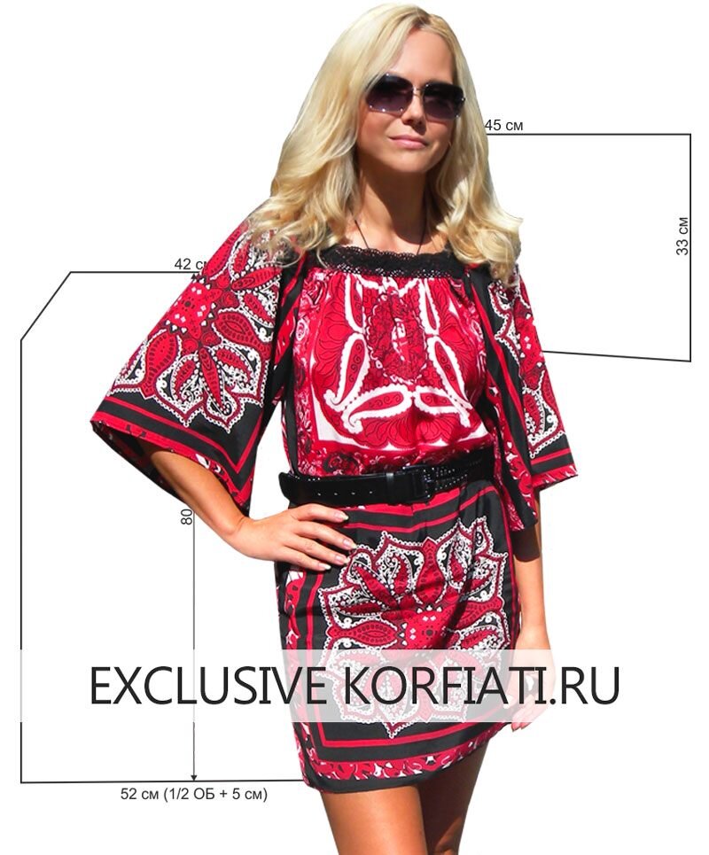 Эта туника выглядит очень фольклорно! Однако это не главное ее достоинство. Туника шьется из натуральной хлопковой ткани. Простой крой и отсутствие классической базовой выкройки гарантируют потрясающий результат всего за пару часов. А саму выкройку вы построите и того быстрее — всего за 10 минут. Выкройка туники дана на 46-48 размер, модель без застежки (!). Если ваш размер меньше или больше, соответственно увеличьте или уменьшите выкройку. ВАЖНО! Основной меркой для увеличения выкройки туники является обхват бедер.