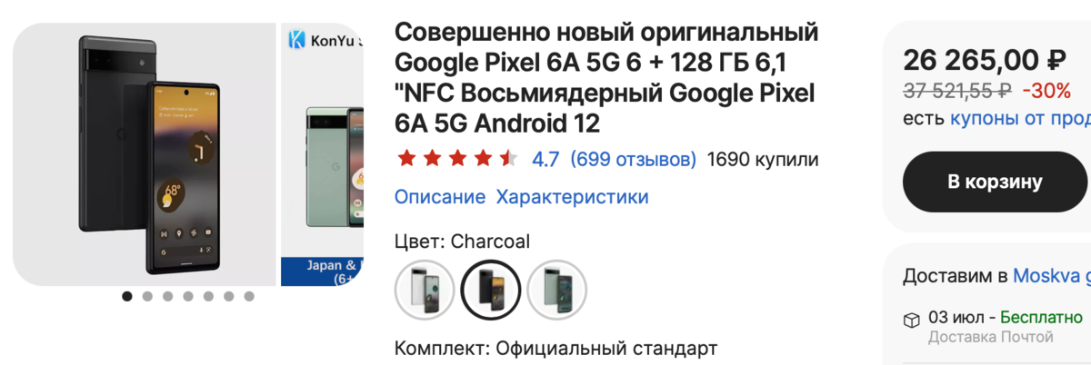 Как-то неожиданно для рынка России лучшей покупкой за 30 тысяч, вероятно, стал смартфон Google Pixel 6A. Девайс получился настолько бескомпромиссным, что я решил на себе проверить, так ли он хорош в повседневной жизни. Какие же первые впечатления произвел на меня Google Pixel 6A — читайте в данном материале. Где купить и какую версию Начнем с приобретения смартфона. Подробнее о вариантах покупки я писал в своем телеграм-канале. Что касается моего Google Pixel 6A, его я купил на Авито, сэкономив тем самым около 5-7 тысяч рублей. Смартфон весь в пленке, аккумулятор также в порядке. От себя отмечу, что покупка на Авито имеет множество рисков, нужно тщательно проверять потенциальное приобретение. Официально купить Google Pixel 6A пока что нельзя, но у того же билайна появилась в продаже 7-я серия смартфонов Google. Возможно, скоро увидим в продаже и другие аппараты. Всего существует 4 версии смартфонов Google Pixel 6A. Глобально их можно разделить на две — американскую и японскую. Ключевое
