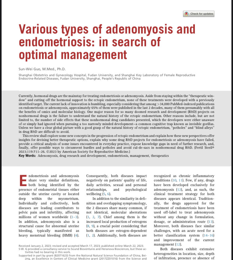Учитывая стагнацию исследований и разработок негормональных препаратов для лечения эндометриоза и аденомиоза, такое безразличие удивляет и несколько обескураживает.