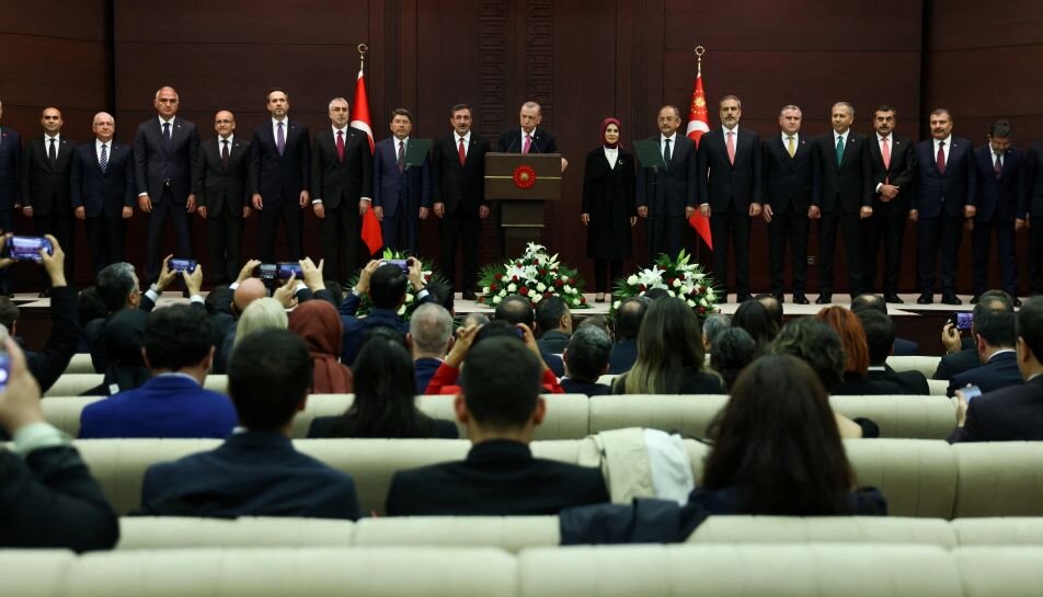 В ночь на 4 июня избранный 28 мая 2023 года президент Турции Реджеп Эрдоган объявил состав нового правительства, который почти полностью обновился. На прежних должностях остались лишь министры здравоохранения – Фахреддин Коджа и культуры и туризма – Мехмет Нури Эрсой, пишет ИнфоШОС.