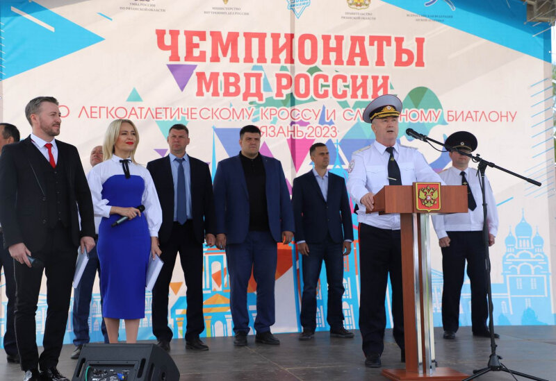 Сегодня, 6 июня в Рязанской области состоялось торжественное открытие Чемпионатов МВД России среди территориальных органов и образовательных организаций МВД России по служебному биатлону и легкоатлетическому кроссу. Чемпионаты проводятся ежегодно в рамках Спартакиады МВД России по служебно-прикладным видам спорта. В церемонии открытия соревнований приняли участие начальник УМВД России по Рязанской области генерал-майор полиции Владимир Алай, представитель Главного управления по работе с личным составом МВД России подполковник полиции Александр Сазонов, заместитель председателя Рязанской областной организации Общества «Динамо», мастер спорта международного класса майор внутренней службы Андрей Волков, начальник Рязанского филиала Московского университета МВД России имени В. Я. Кикотя полковник полиции Андрей Доронин, заместитель министра физической культуры и спорта Рязанской области Юрий Колдин, начальник управления по физической культуре и массовому спорту Администрации города Рязани