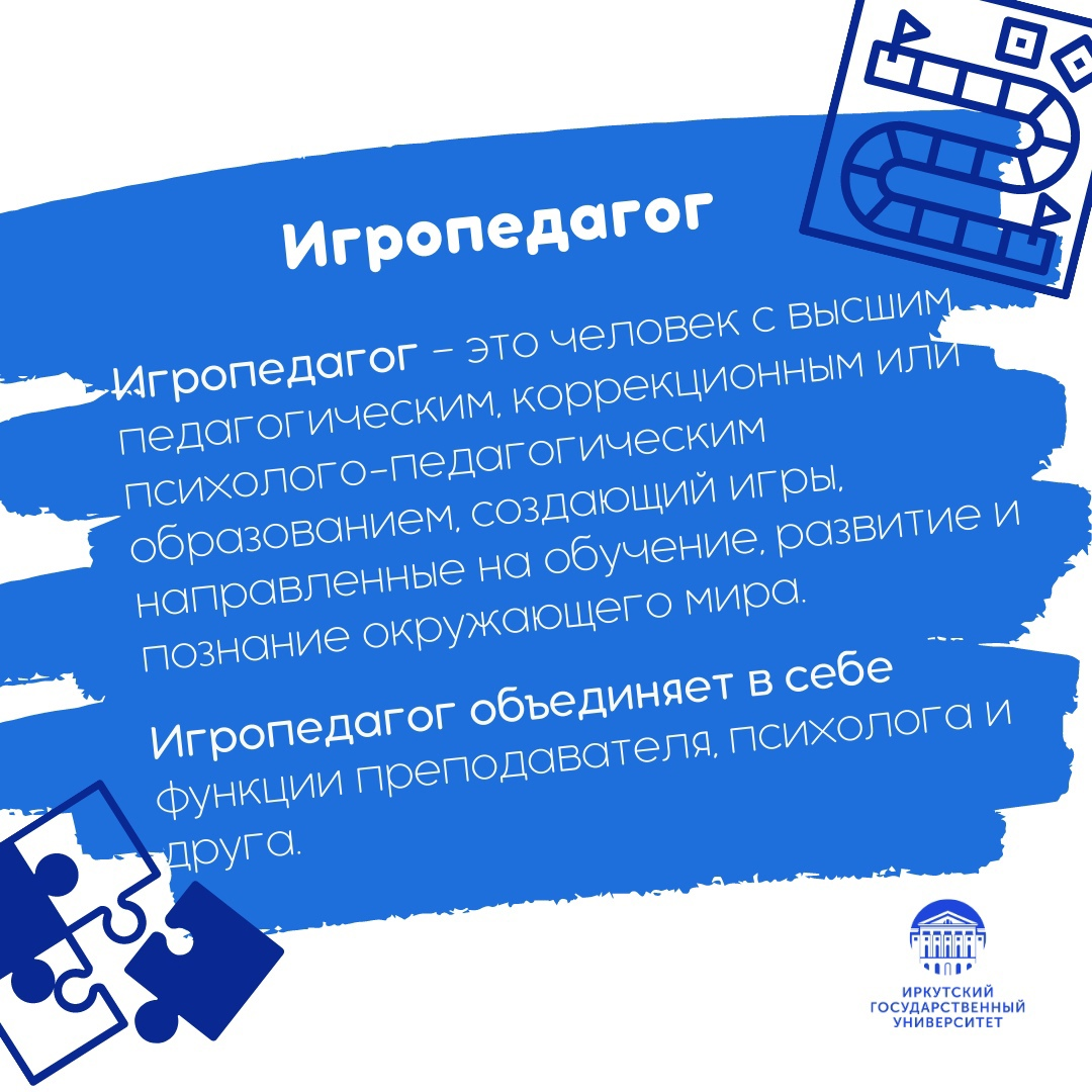 В ближайшие 15-20 лет стремительное развитие науки и технологий приведет к тому, что более 50% существующих на данный момент профессий устареют. Иркутский государственный университет предлагает новые специальности актуальные для современного мира. Ранее мы рассказывали о кураторах онлайн-платформ и инструкторах по интернет-сёрфингу, сегодня речь пойдет еще о трех новых направлениях в педагогике. Игропедагог Игропедагогика – это новое слово в вопросе получения образования. Она сочетает в себе классические учебные процессы и современные игровые практики, поэтому увлекает ребенка, развивает в нем скрытые таланты, раскрывает потенциал. Лайфстайл-тренер Развитие технологий неизбежно вдохнет новую жизнь и в занятия физкультурой. Забота о физическом здоровье станет комплексной. Веб-психолог Среди специализаций, которые становятся все более востребованными в сфере образования, нельзя не назвать веб-психологию. Становление человека в условиях информационного общества создает массу новых ком