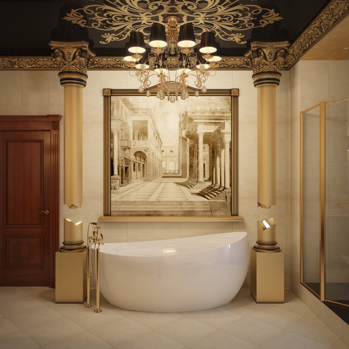 Приоткрываем для вас завесу тайны и делимся интерьерами по-настоящему королевских ванных! Мраморная ванная Наполеона Тайную ванную комнату Бонапарта нашли в ходе одной из реконструкций дворца Питти во Флоренции. Справа и слева в нишах комнаты — мраморные статуи, пол инкрустирован мрамором, смеситель выполнен из бронзы, а табуреты — из резного и позолоченного дерева. Царь-ванна Александра I Наверняка вы слышали о Царь-колоколе или Царь-пушке, а как насчет Царь-ванны? Находится она в Царском селе, где по приказу Александра I для нее построили Баболовский дворец. Само здание, к сожалению, было разрушено в ходе бомбежек в ходе Великой Отечественной войны, а вот огромная каменная ванна сохранилась. Размер впечатляет: 1,96 м в высоту и 5,33 м в диаметре. Когда слуги наполняли сосуд водой, им приходилось принести