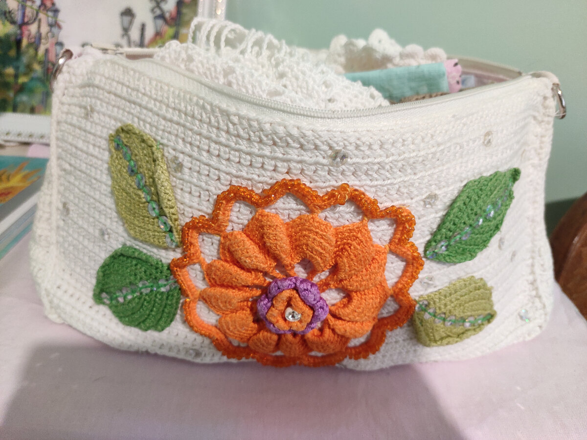 Покажу вязаные сумки, которые у меня есть. Не все я вязала сама. Одну купила. Очень люблю вязаные сумки, хотя они не очень практичные. Две сумочки я даже не выгулила ни разу, только любуюсь. 1. Белая сумочка. Эту сумочку я вязала в 2011 году, когда была в декрете. С каким удовольствием и одержимостью я её творила! Вставала в 5 утра, чтобы продолжить. Связала из толстой хлопковой пряжи белого цвета, сшила подклад из плотной ткани розового цвета. И связала листья и цветы, украсила их пайетками и бисером. Вставила молнию. Эту сумочку я очень активно носила в то лето. Стирала в стиральной машине. Потом она от такого частого использования поизносилась. И я стала использовать её, как ёмкость для хранения своих рукодельных сокровищ. Сейчас там хранятся мои салфетки. 2. Синяя сумка из шнура. Эту сумочку я купила у одной девушки из Инстаграмма в 2018 году. И до сих пор ни разу не носила. Очень красивая, милая сумочка оказалась не удобной в использовании. Молния, пришитая по кругу долго и м