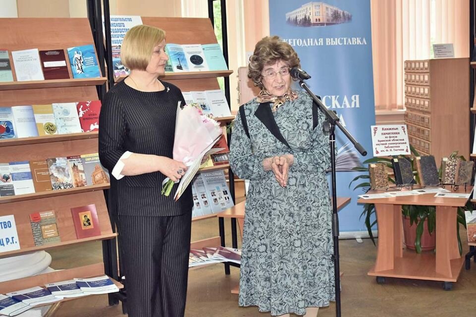 В Брянской областной научной универсальной библиотеке имени Ф.И. Тютчева состоялось закрытие ежегодной выставки «Брянская книга». В течение всего времени ее работы посетители могли ознакомиться с представленными изданиями, выбрать понравившуюся книгу и проголосовать за нее. В итоге «Книгой года» была признана повесть «Было у матери пять сыновей» известного брянского краеведа Светланы Кизимовой (на фото). В своей книге она рассказала о трагедии своей семьи — у ее бабушки на фронтах Великой Отечественной войны погибли пятеро сыновей. Награждение победителей провела директор областной библиотеки, Заслуженный работник культуры РФ Светлана Дедюля. По ее словам, всего было представлено более 350 названий научной, учебной, историко-краеведческой и художественной литературы. Широко представлен и видовой аспект изданий: книги, альбомы, нотные и рекламные издания, календари, открытки, закладки и т.д. В выставке приняли участие более 20 издательств, которые являются партнерами областной библиотек