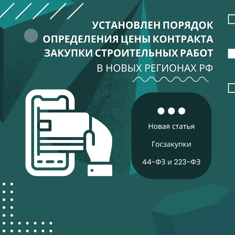 Установлен порядок определения цены контракта закупки строительных работ в новых регионах РФ.