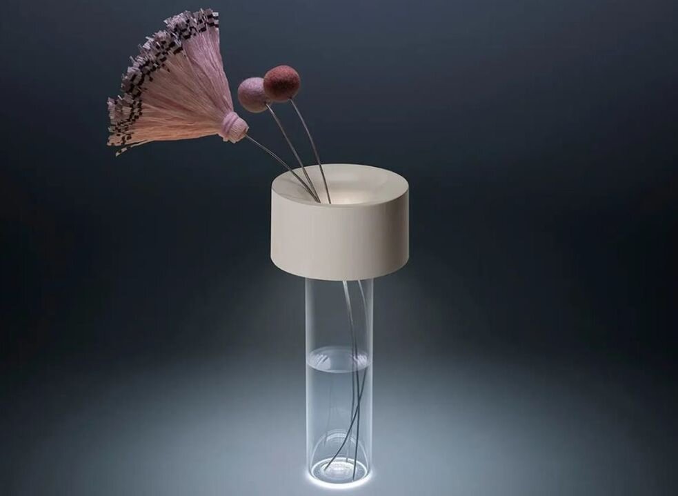 Концепция гибкости также стала основой для Fleur от Foscarini, дополнившись поэтическим акцентом в лице Родольфо Дордони. Этот приглушенный беспроводной светильник, который одновременно служит и вазой для цветов, является результатом глубоких технологических исследований, направленных на максимальное уменьшение размеров светодиодных плат PCB. Когда лампа включена, свет подчеркивает профиль стеклянной ножки и отбрасывается на стол с помощью небольшой светодиодной цепи, являющейся результатом исключительной миниатюризации компонентов, разработанных Foscarini.
