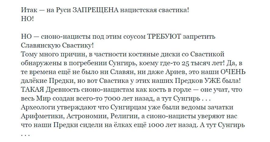 Прямо физически ощущается, как автор захлёбывается от радости - мол, вот я утёр нос этим проклятым сионо-нацистам! (Сам термин заслуживает отдельного внимания. Автор, мол, сам никакого отношения к нацистам не имеет, хоть и восторгается свастикой и ариями, а вот те, кто к свастике тёплых чувств не питает – те нацисты, да... Да не простые, а сионо-нацисты! В общем, понятно, в чей огород запущен этот булыжник.)