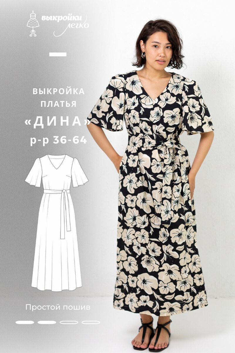 Новинка! Платье с крылышками «Дина». Уже в каталоге на нашем сайте. Это первое платье из нашей новой летней коллекции. Вся изделия были созданы специально под ткани с принтами. Свободное и легкое платье, с яркими цветам или однотонное, приталенное или без пояса, платье для города или отпуска. Фасон платья подойдет для крупных принтов, в нем нет рельефов и мелких деталей, ничего не «режет» рисунок. Съемный пояс подчеркнёт талию, или можно обойтись вообще без него. В боковых швах есть карманы. Горловину на спинке можно сделать поглубже, на лекалах отмечены два выреза. Длина у платья комфортная — миди, а если хочется покороче, то просто обрежьте лишнее на лекалах. ✅ Купить выкройку платья «Дина» можно сегодня со скидкой первого дня 25% - ССЫЛКА НА ПЛАТЬЕ