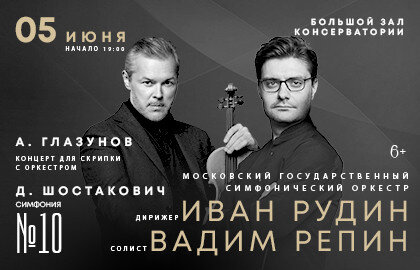 🎼шедевр скрипичного репертуара – виртуозный и экспрессивный концерт Глазунова для скрипки с оркестром. Сольную партию исполнит один из самых прославленных мировых скрипачей - Вадим Репин.