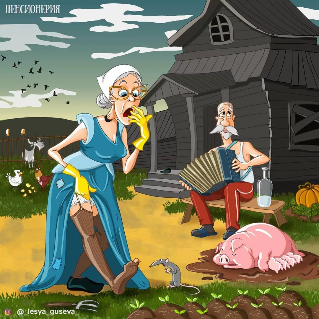 Цикл иллюстраций Пенсионерия особенно понравился зрителям. Это вполне объяснимо. Ведь самое лучшее лекарство от старости — это смех. Радостные, смеющиеся человеческие лица одинаково прекрасны, вне зависимости от возраста.