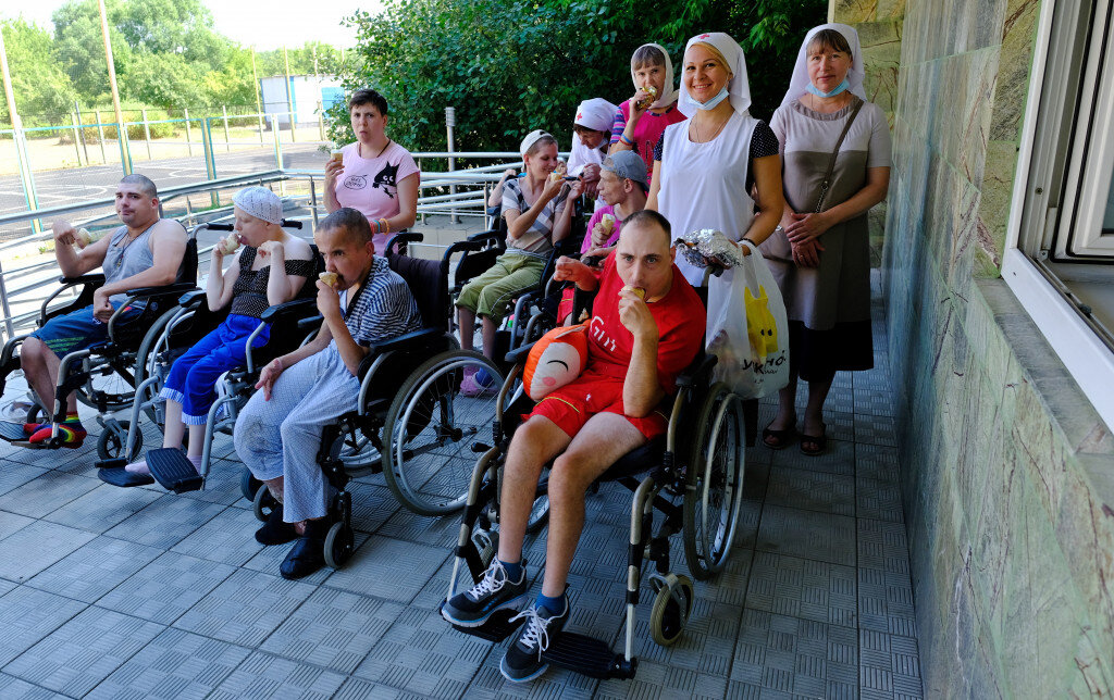 С раннего детства отказники Мы не встретим на улице людей с тяжёлыми врождёнными заболеваниями. Чаще всего они находятся в психоневрологических интернатах - учреждениях закрытого типа. Туда попадают люди с инвалидностью от 17 лет или те, кто не способен за собой ухаживать. С 2000 года наши сёстры милосердия посещают подопечных в московском Доме социального обслуживания "Люблино" (прежнее название - ПНИ №11). Там находятся 650 человек. Почти все они - "отказники" с раннего детства. Их не навещают близкие, и у них нет друзей. В основном, все подопечные проекта - относительно молодые люди до 35 лет. До глубокой старости, как правило, они не доживают... Сёстры милосердия ухаживают за подопечными, учат общаться между собой, делают с ними несложные упражнения, но главное - проявляют человеческое внимание, заботу и любовь, которых им так не хватает. Всю жизнь в интернатах Алексея Сучков, один из насельников психоневрологического интерната. Сейчас ему 25 лет, но всю свою сознательную жизнь о