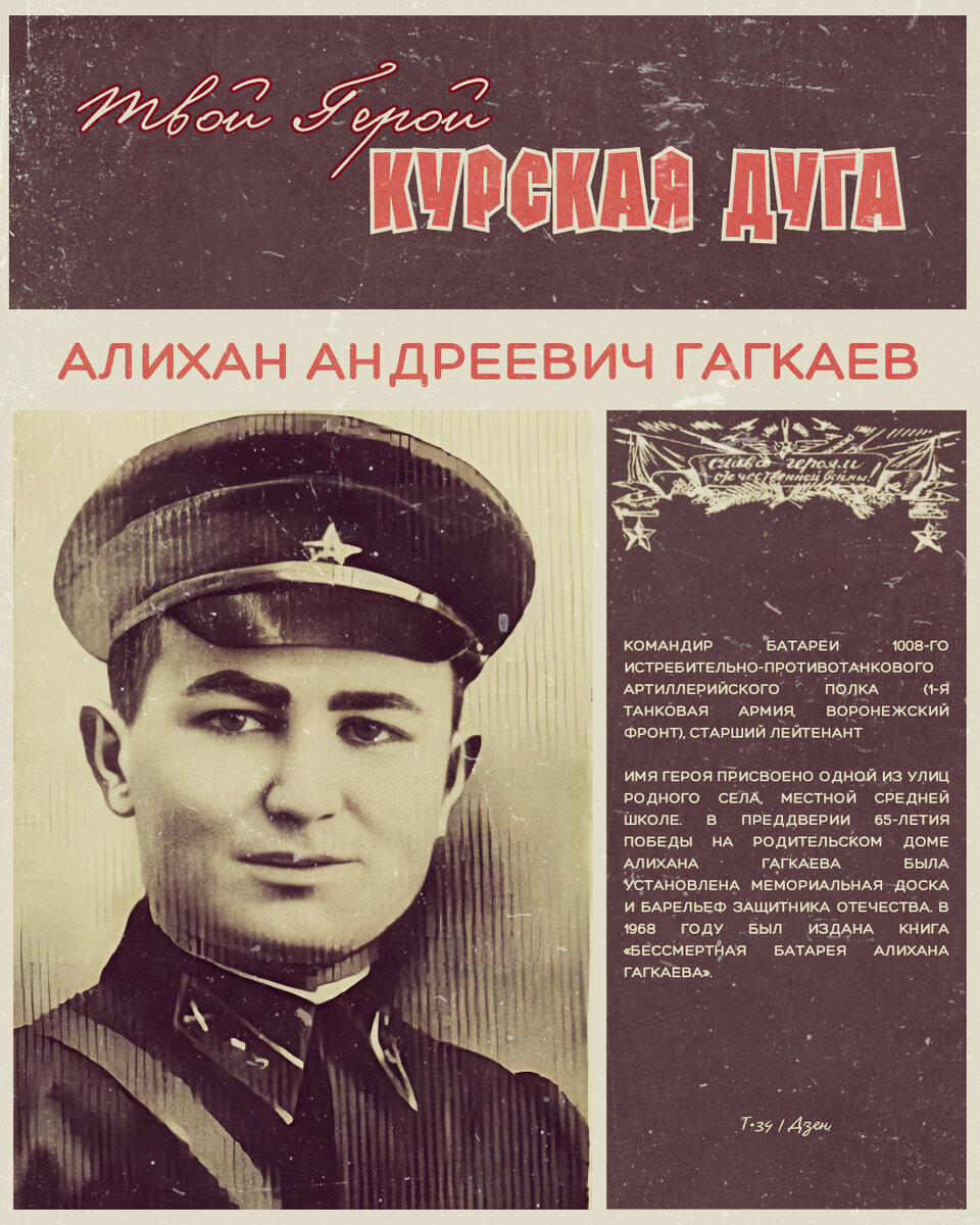 Славный сын осетинского народа, воспитанник Ленинского комсомола, Алихан Андреевич Гагкаев в боях на белгородской земле показал пример выдающейся стойкости, воинской доблести, великого мужества и самоотверженности во имя своей Родины.
