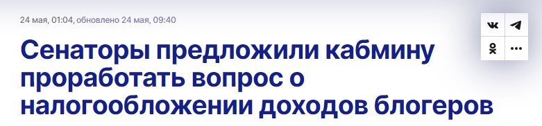 Сенаторы Совета Федерации обратились к правительству с предложением усовершенствовать систему налогобложения физлиц, ведущих деятельность в интернете. Это касается не только блогеров, но и всех остальных, кто так или иначе имеет какие-то заработки в сети. Постановление Совфеда, подготовленное Комитетом по бюджету и финансовым рынкам, носит звучное название "О реализации налоговой политики в целях обеспечения экономического роста" (ну конечно, все с самыми благими намерениями). В частности, оно содержит вот такую строку: Рекомендовать правительству проработать вопрос о дальнейшем совершенствовании налогообложения доходов, получаемых организациями и физическими лицами от осуществления ими деятельности в интернете. На текущий момент блогеры и так платят налоги: кому позволяют обороты - как самозанятые, кто хочет - как физлица, у кого большие обороты - как ИП. Но судя по активной "охоте на блогеров", которую мы наблюдаем в этом году, правительству этого недостаточно. Изначально взялись за