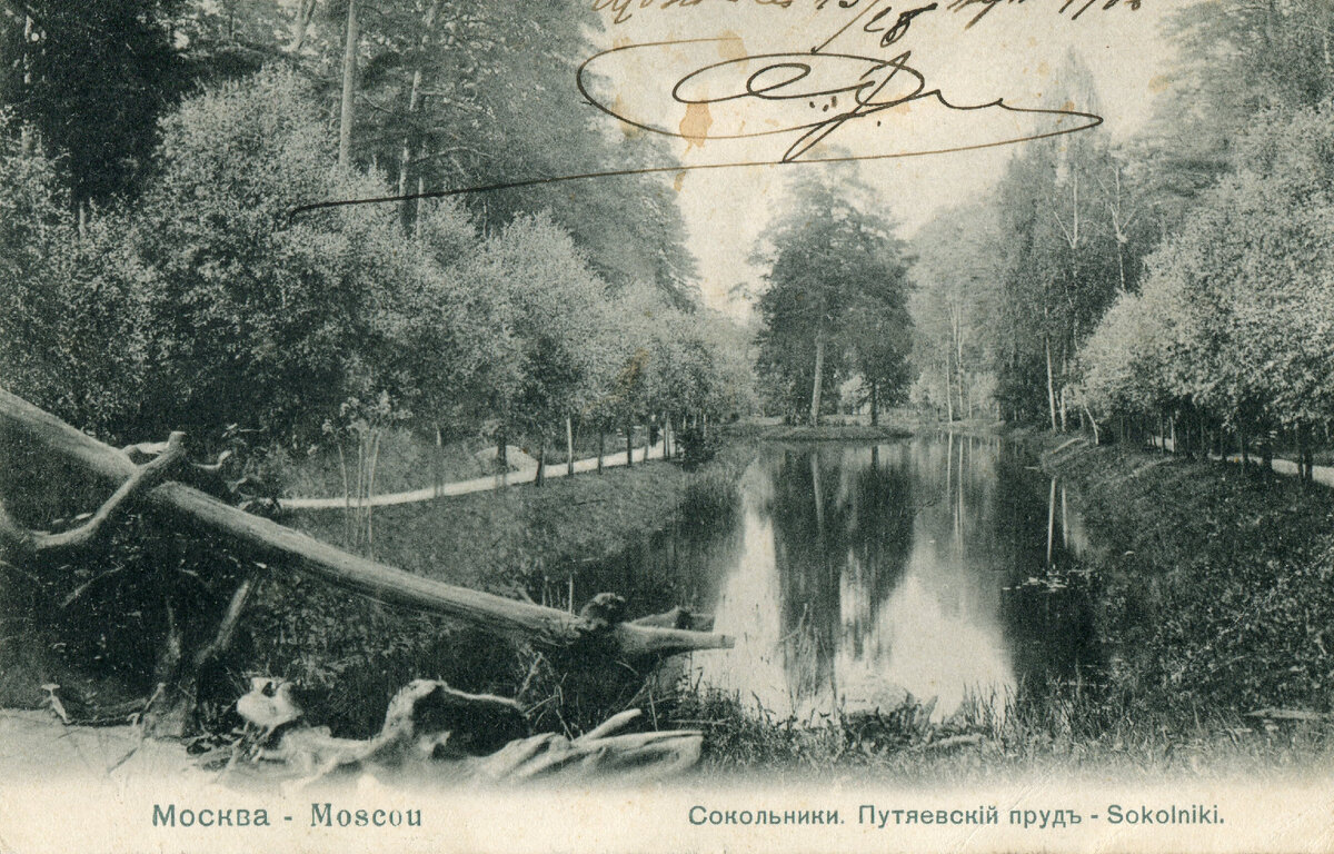 Н.С. Лесков "Некуда". Кареты, коляски, дрожки и щеголеватые купеческие тележки неслись шибкой рысью врассыпную по обширному Сокольничьему полю; большая часть из них съезжалась на деревянном мосту, перекинутом через другой ручей, который также, не знаю почему, называют речкой Рыбенкою. Вот вдали, на темно-зеленом поле сосновой рощи, окаймленной красивыми дачами, обрисовались белые столбы Сокольничьей заставы. На левой руке, в близком расстоянии от заставы, была неког