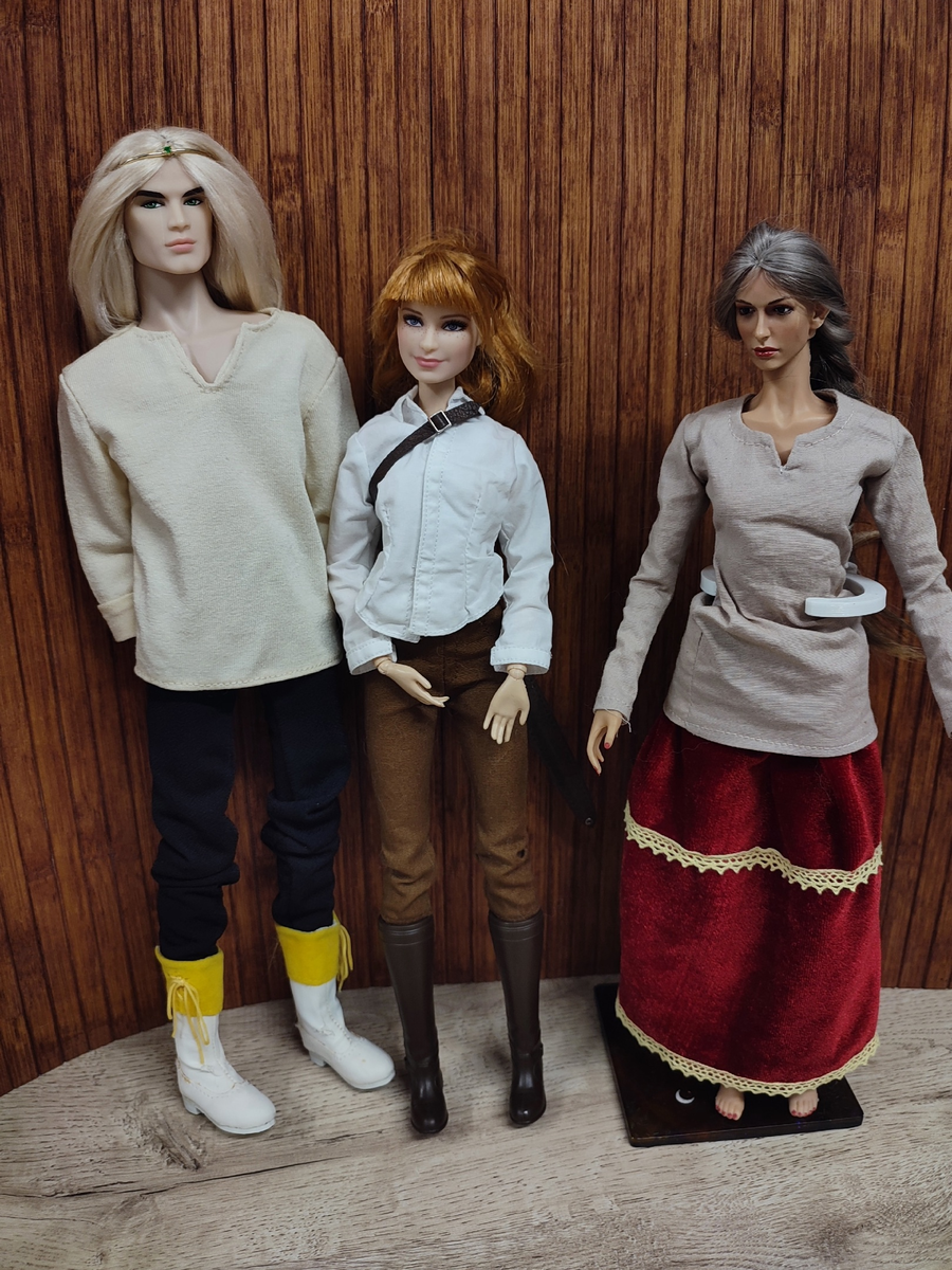 Продолжаю знакомить вас с моей коллекцией кукол. Сегодня совсем маленькая серия из жителей Белории. То есть понятно, что при случае Дамблдор может играть Ксандра Перлова, а рыжий БМР Мрака (хоть и не похож на описание), но прямо "персонажных" у меня на момент трое. Шелена Первой, совершенно случайно у меня появилась Шелена. Об этом я рассказывала тут. При все наивности сеттинга, оборотень один из моих любимых персонажей. Да, она не такая, как описана и не совсем такая, как в голове, но внезапно эти красные губы и ногти ей весьма идут. Вольха Вольха появилась у меня тоже почти случайно. Мне в лоте попалась голова Клэр. А потом я долго искала ей тело и в итоге добыла оригинальное вместе с костюмом. Осталось только заменить современную майку на более нейтральную рубашку и вручить двуручный меч. Ну а какая ей разница, она ж им все равно пользоваться не умеет. У Вольхи есть смолка. Ну как есть. Лежит в виде заготовки... Лён Лен Аррактур тор Ордвист Шэонелл один из самых родовитых моих куко