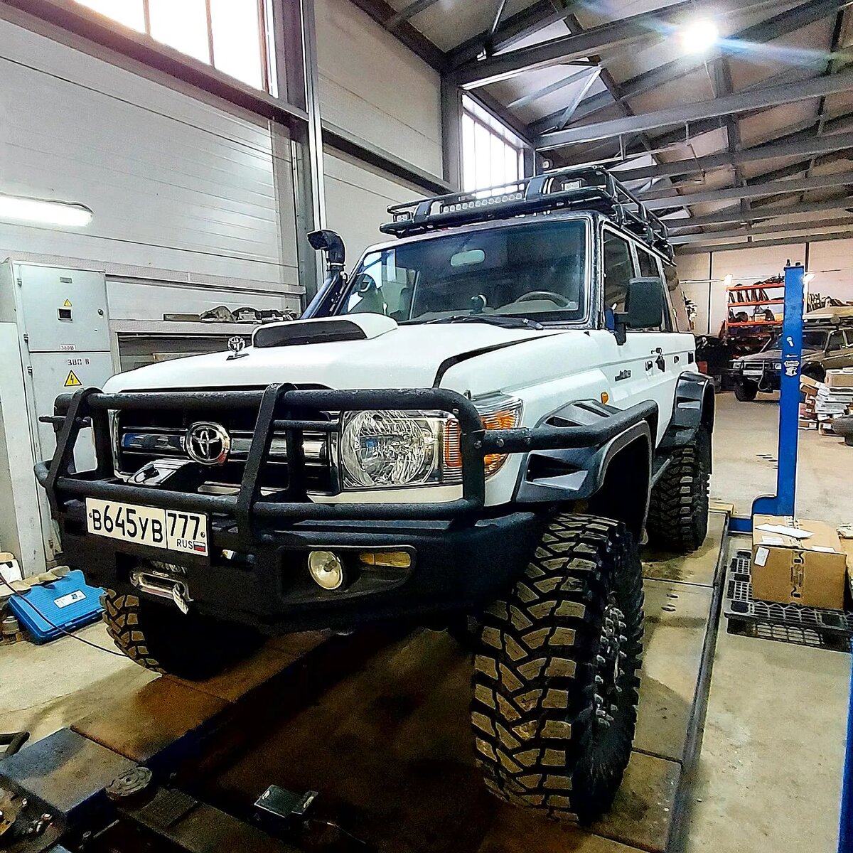 Заготовкой для тюнинга специалистам из Красногорска послужил отлично известный любителям внедорожных выездов японский «проходимец» Toyota Land Cruiser 76. Существенно повысить его способности на оффроаде помогли несколько важных технологических решений. Для начала, парни оборудовали транспорт бортовыми редукторами TIBUS с подкачкой. А колёса обули в 37-дюймовые диагональные грязевые шины MAXXIS T