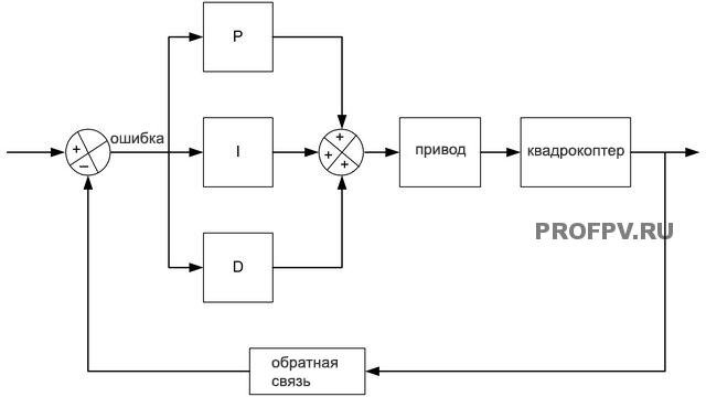 PID — это функция в полетном контроллере. Эта функция считывает данные с датчиков и передает двигателям, как быстро им нужно вращаться. В конечном итоге, именно так достигается стабильность и идеальность полета квадрокоптера.