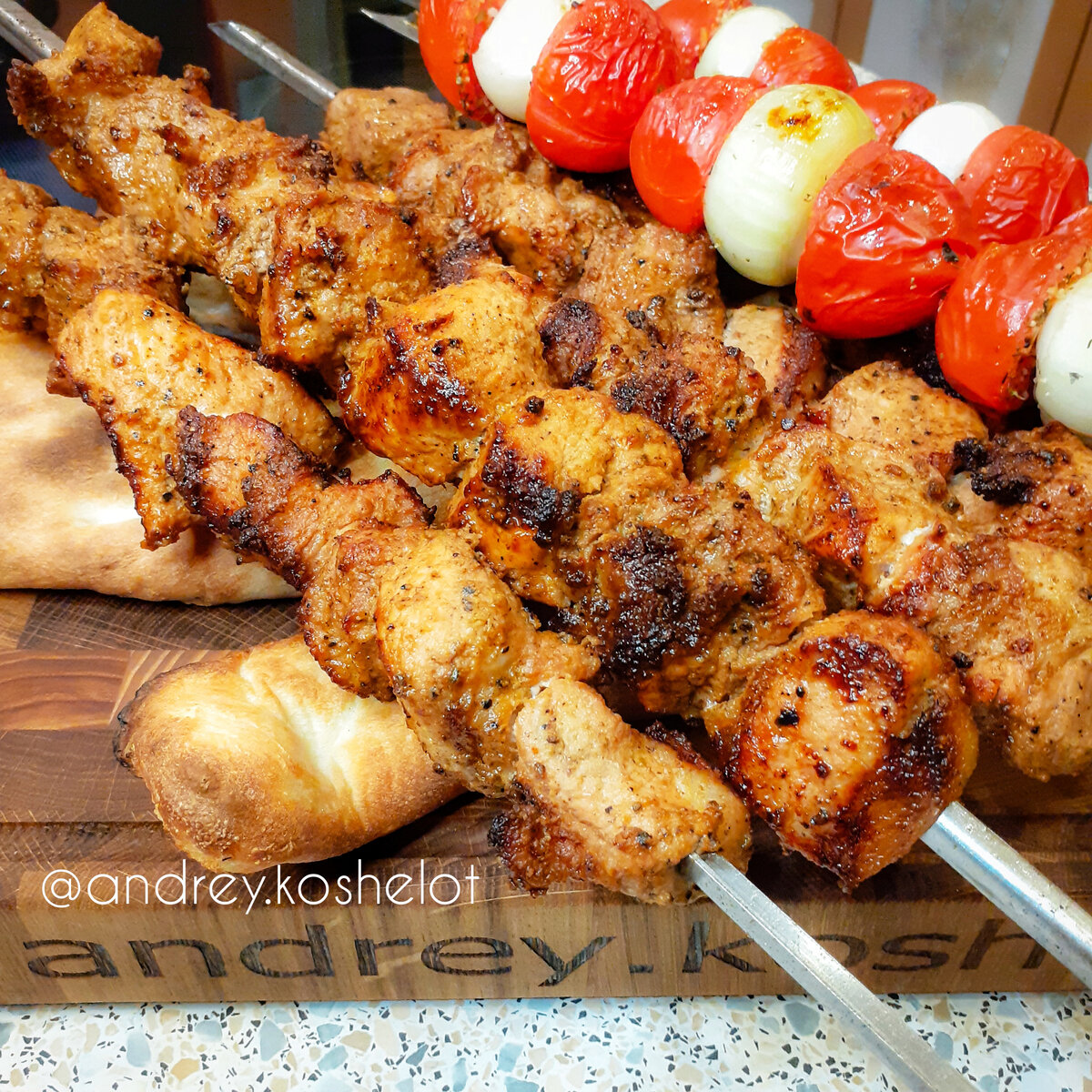 Сочетание ароматного, сочного мяса, овощей гриль и хрустящего грузинского хлеба – что может быть лучше! Вам понадобится: - Свиная шея – 2 кг;