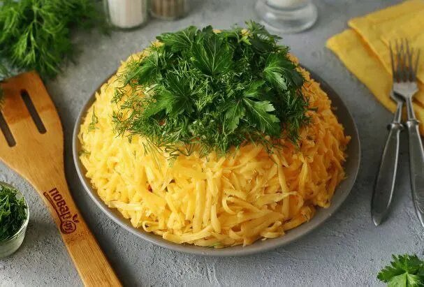 📖 Ингредиенты: - Печень куриная - 400 г. - Лук - 1 шт. - Морковь - 1 шт. - Огурцы маринованные 2-3 шт. - Яйца вареные - 2-3 шт. - Сыр - 100-200 г. - Майонез - 100 г. - Соль - по вкусу 🧑🏻🍳 Приготовление: 1. Печенку отварить в подсоленной воде (от момента закипания минут 10). Остудить, натереть на крупной терке. 2. Морковку с луком обжарить на растительном масле. 3. Огурцы, яйца, сыр натереть на терке. 4. Выкладывать слоями: 1-й: печенка 2-й: морковь с луком 3-й: огурцы 4-й: яйца 5-й: сыр 5. Между слоями промазать майонезом. Дать салату пропитаться несколько часов. Приятного аппетита💟