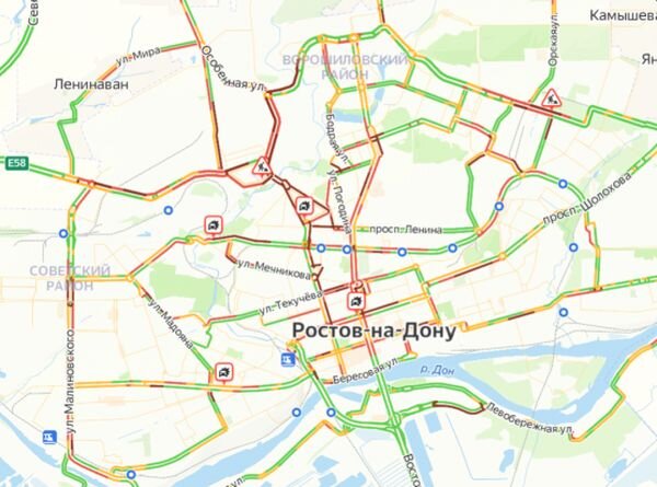 Из-за дождей и крупного пожара Ростов вечером 26 мая сковали десятибалльные пробки, следует из данных сервиса «Яндекса».