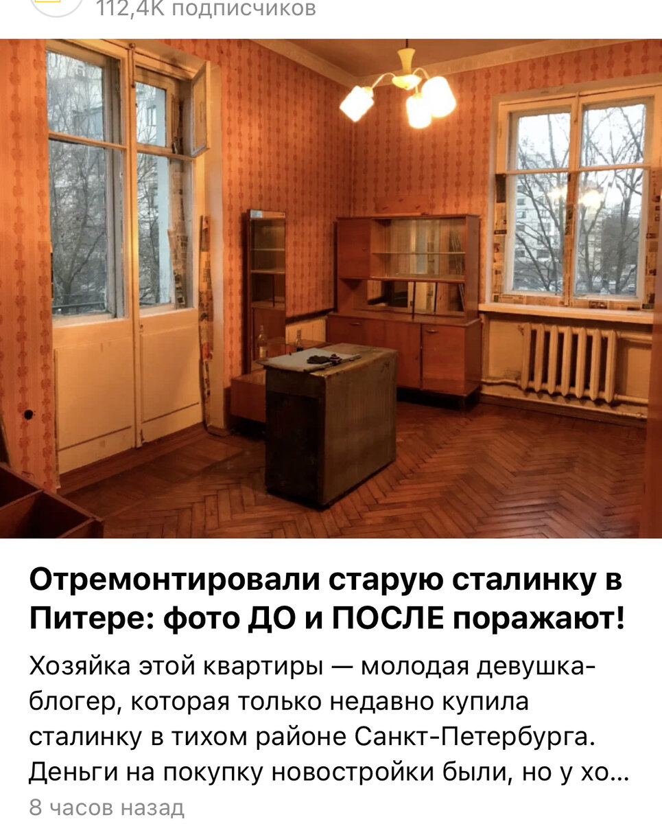 Лента выдалась мне сейчас эту публикацию. Компания рассказывает как делала мне ремонт, хотя ремонт они мне НЕ ДЕЛАЛИ!!! Я их впервые вижу и слышу!!! т.к. фото моей квартиры часто гуляют по интернету, вынуждена предупредить!!! Все я придумывала сама, а ремонт делала с прорабом Валерием Русановым! Буду благодарна лайками комментарии, чтобы этот пост увидело больше людей!!! Как можно обращаться к компании которая обманывает в публикациях?