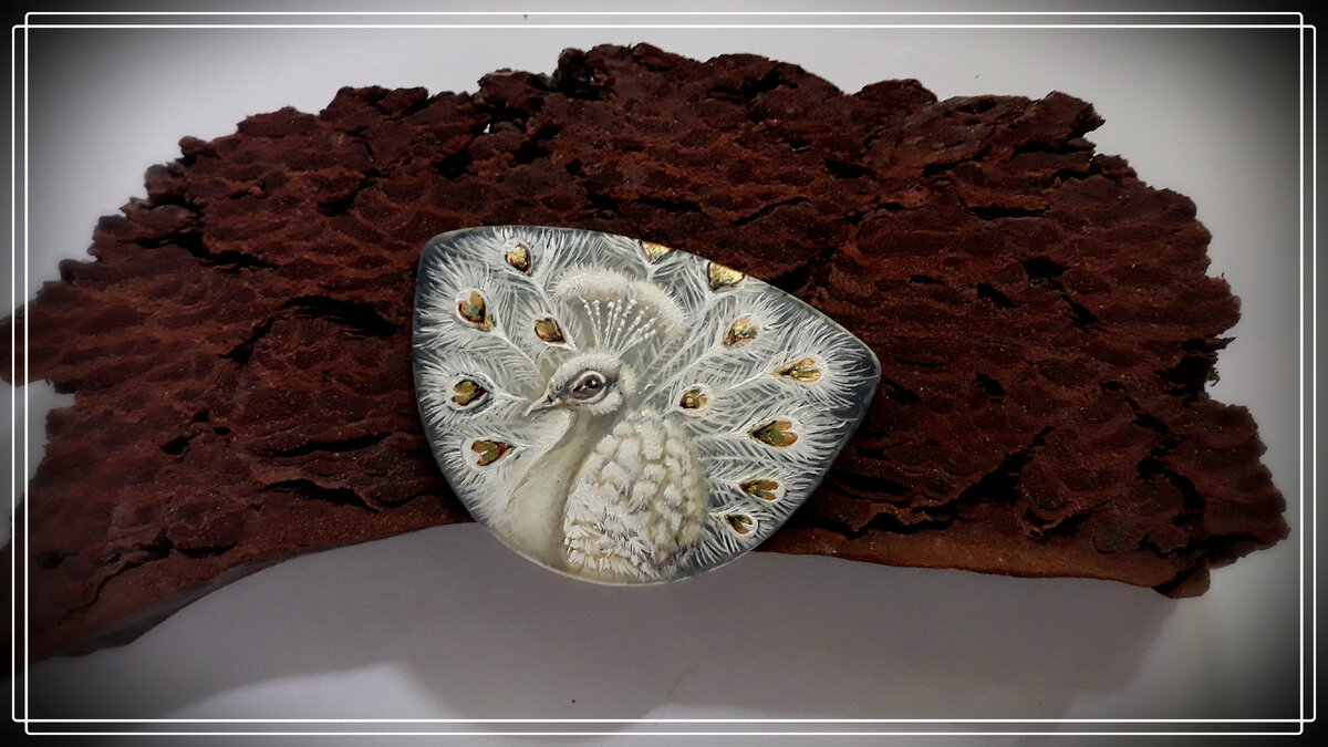 Вообще-то на белом кахолонге я думала нарисовать розы. Но увидела снимок белой птицы, и поняла, что лучшего камня под неё не найти.