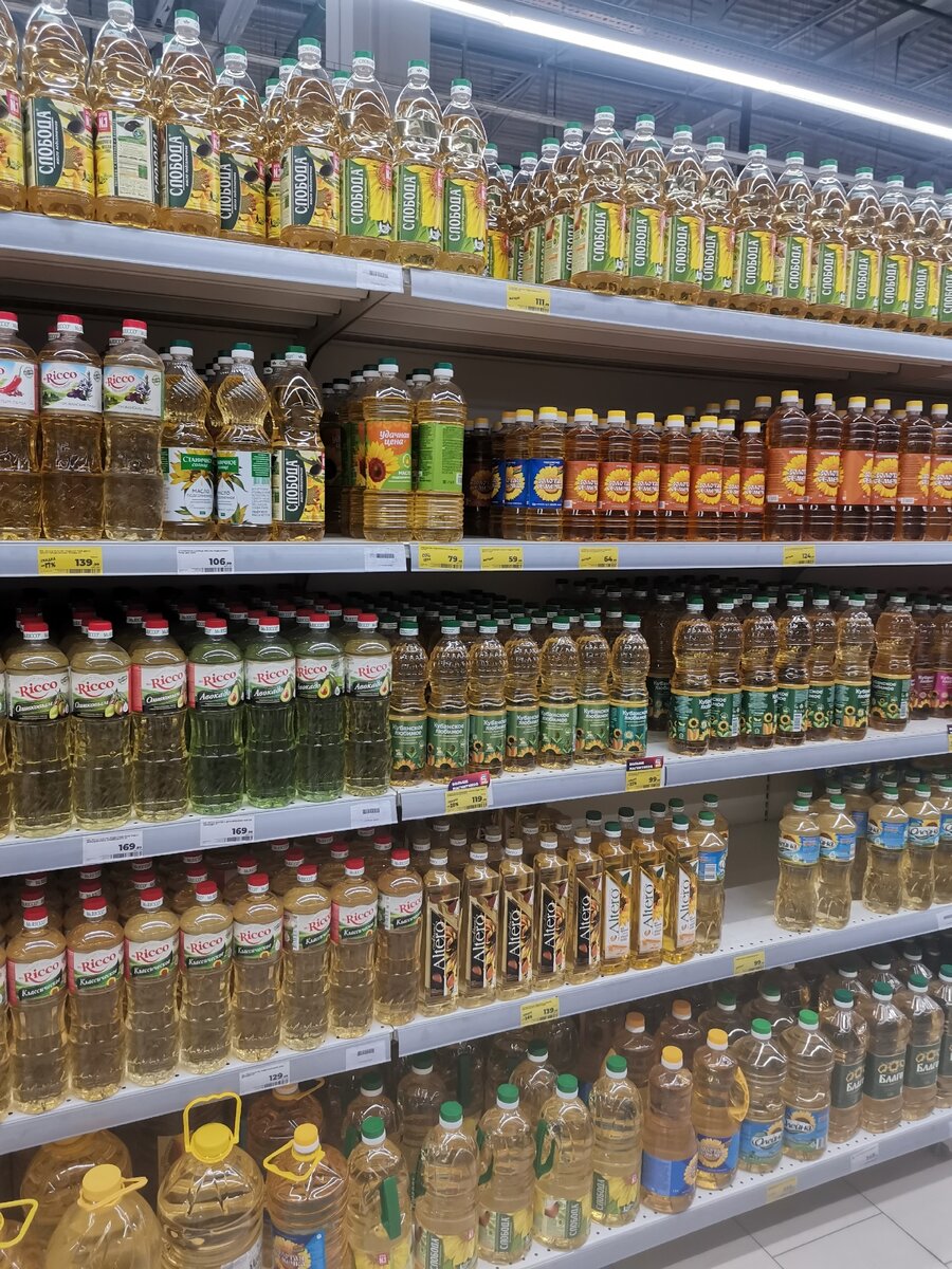У самой в списке покупок первым пунктом было растительное масло и крупы на завтрак, поэтому добро пожаловать в отдел с бакалеей. На полках с маслом выбор весьма большой, даже на некоторое время остановилась здесь, вычитывая информацию. Что понравилось: масло от "Mr. Ricco" или с прованскими травами, или с перцем за 139 рублей, классическое масло "Удачная цена" за 79 рублей (несколько раз покупала, обычное, не хуже по качеству остальных), ароматное масло от "Золотой семечки" за 64. Было еще несколько производителей с ценой до 120 рублей, что здорово.