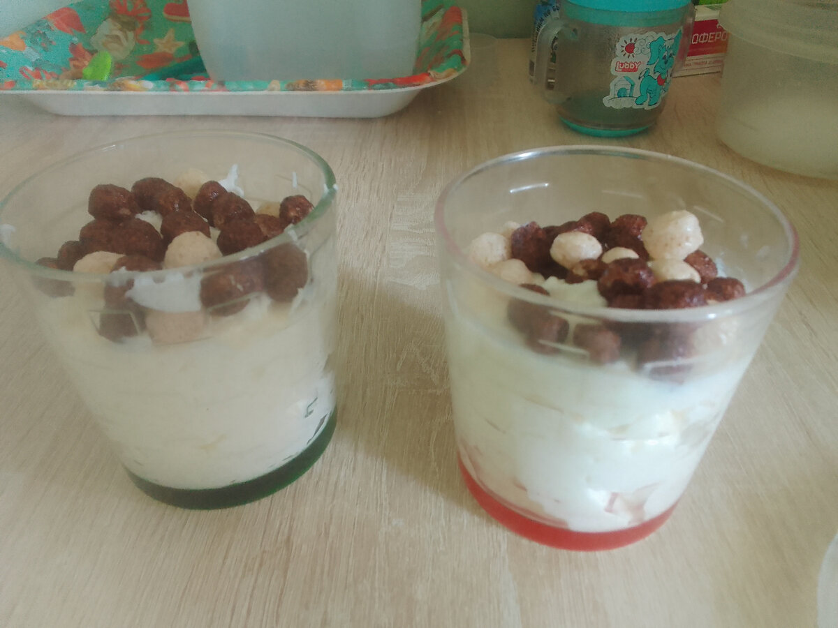 Суббота. 5.45. Утро начинается. У нас начинается с завтрака, который готовится очень быстро. Творог с шоколадными шариками. Ингредиенты: - 2 пачки творога, - 200 гр. сметаны, - 0.5 стакана сахара - шоколадные шарики для украшения. Процесс приготовления занимает 15 минут максимум. Смешать творог со сметаной и сахаром. Можно использовать сахарную пудру. Разложить полученную массу в стаканы, украсить сверху шоколадными шариками. Убрать в холодильник на 20 минут. Подавать охлажденным.