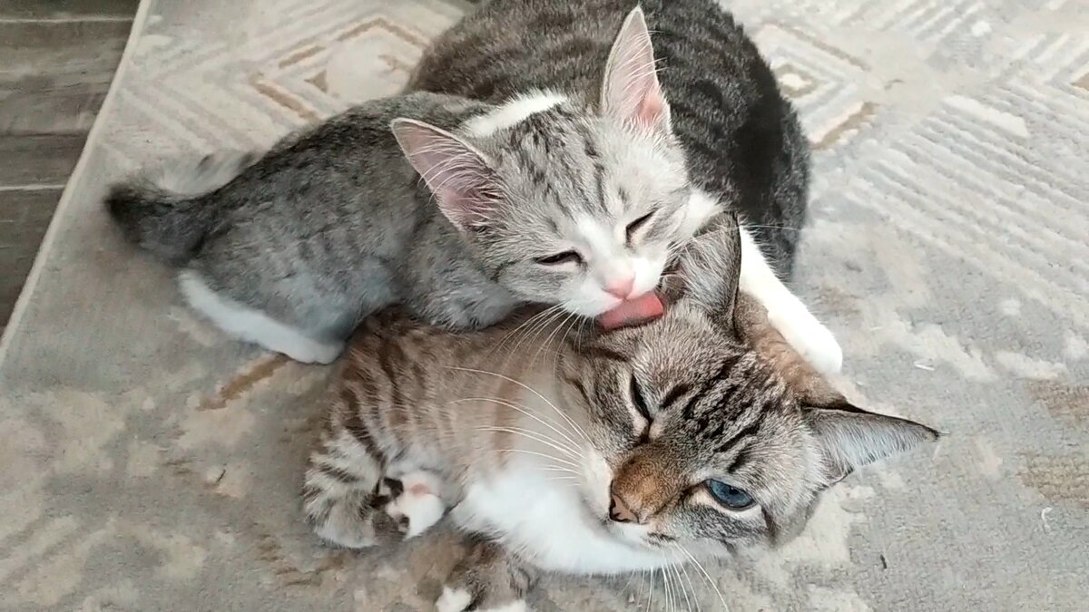 Спойлер: История душещипательная (на самом деле "экшон"). Этот кабан (на самом деле Беляшик) - единственный родственник рыси (на самом деле Тигры) и поэтому рысь, полная любви, лижет ему уши, а я стою рядом и растроганно плачу от умиления. Смотрите во всех "калидорах" нашего прайда!