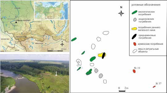 Данная статья посвящена публикации ирменских материалов с могильникаЧумыш-Перекат. Необходимость такой работы обусловлена несколькими обстоятельствами. Во-первых, исследования ирменских памятников Ю.Ф. Кирюшина и его учеников были приурочены в основном к р. Обь, зона Причумышья, западного Присалаирья осталась до настоящего времени слабо изученной. Во-вторых, в последнее десятилетие целенаправленных раскопок ирменских некрополей в Верхнем Приобье практически не проводилось. В связи с этим накопление нового материала происходило в основном в результате исследований разновременных погребальных комплексов. Таким объектом является могильник Чумыш-Перекат, на котором было раскопано два погребения ирменской культуры. В-третьих, полевые исследования данного некрополя с большой долей вероятности были полностью закончены в 2019 г. и появления новых материалов бронзового века в ближайшее время не предвидится, что определяет необходимость введения в научный оборот всех материалов могильника, полученных на данный момент.