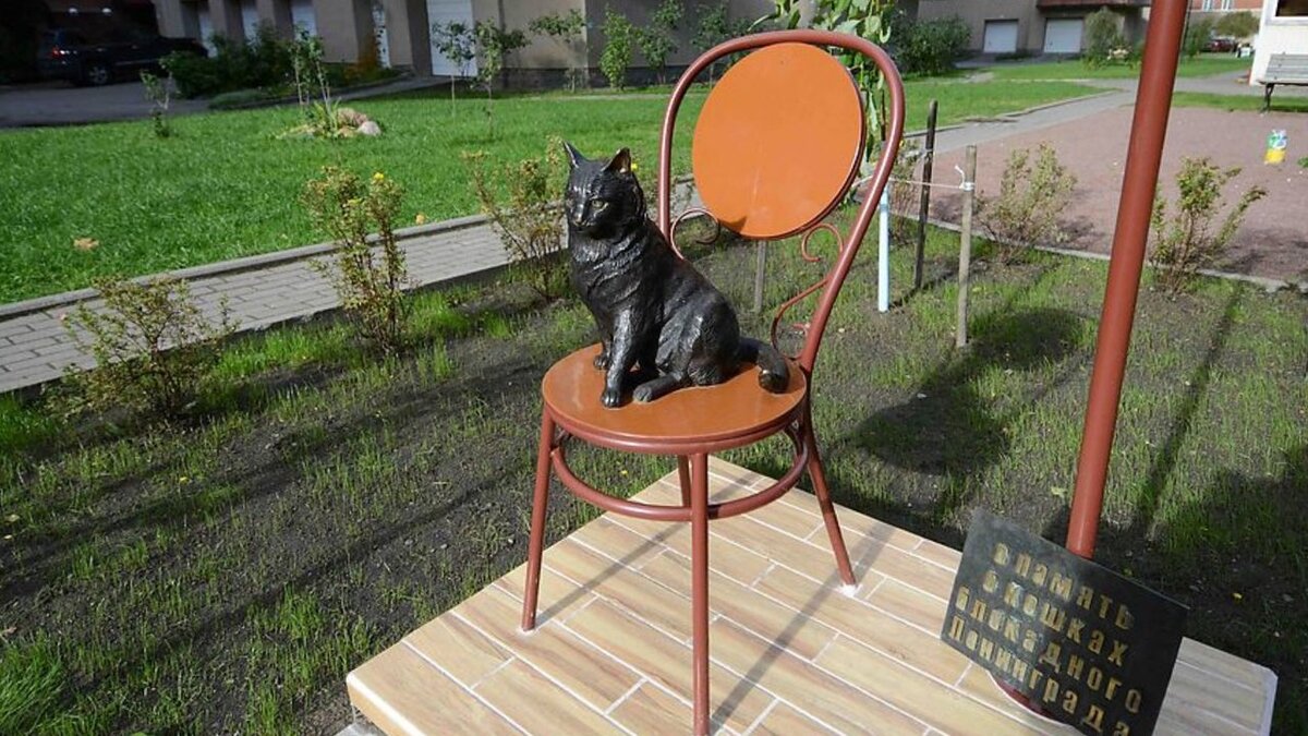 На петербургской улице Композиторов, дом 4, расположен необычный памятник кошке, сидящей на стуле. Скульптура появилась в городе в память о годах блокады Ленинграда, когда полчища крыс уничтожали и без того небольшие запасы продовольствия и даже нападали на обессилевших от голода людей.