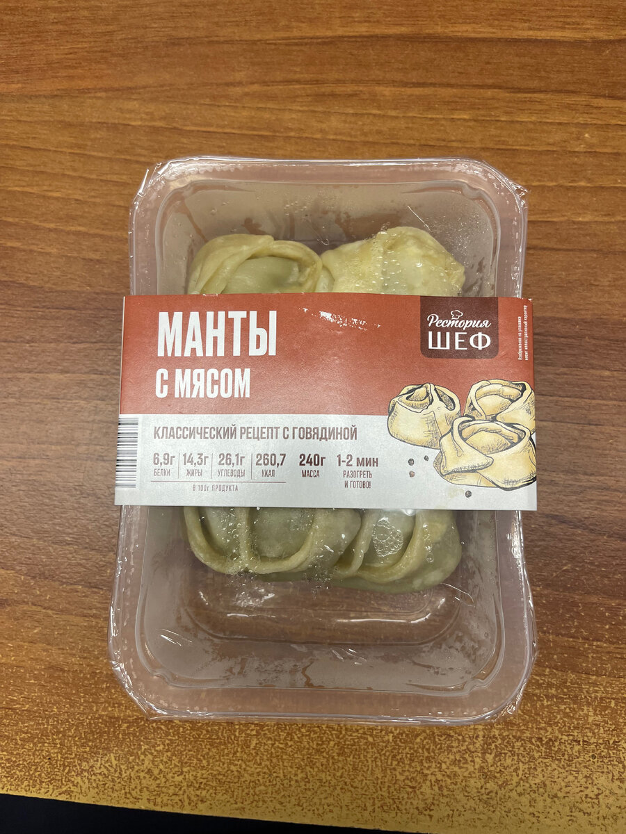 В кафе я хожу не каждый день, но обедаю регулярно. Сегодня поговорим об еще одном продукте от «Рестория.Шеф» это конечно же всеми любимые манты. У «Рестория. Шеф», тоже есть свои манты. Средняя стоимость 155₽ в магазине «Пятерочка» но иногда можно приобрести и по акции за 125₽ когда до срок годности остаётся 2-3 дня. Итак манты все мы привыкли есть их горячими, со сметаной или любимыми соусами. Когда кусаешь, а там много сока, лука 🧅 и конечно же мяса. Но как оно обычно бывает покупаешь готовые, сваришь, а внутри много много соевого мяса. Такое нам не подходит. 🫷 Так чем же отличаются манты от «Рестория.Шеф» наверное тем, что возможно у них тоже не чистое мясо, но оно там есть. Нет много лука, но все равно манты сочные и вкусные. Порция не огромная для любителей и ценник никак в некоторых магазинах. Вывод если решите поесть магазинные манты покупайте от «Рестория. Шеф». Если кто знает другие делитесь названием и где можно приобрести ? Обязательно попробуем 🤝