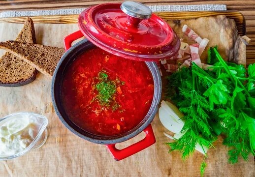 Борщ - одно из самых любимых блюд русской кухни. Это традиционное и популярное блюдо известно во всем мире благодаря своему неповторимому вкусу и аромату. Сегодня мы расскажем, как приготовить вкусный борщ на своей кухне. Ингредиенты: - 1 кг свеклы - 500 г мяса (говядина, свинина или курица) - 3-4 картофелины - 2 моркови - 1 луковица - 1-2 зубчика чеснока - 1 болгарский перец - 1 пучок зелени (укроп, петрушка) - 1 лимон - 2 столовые ложки томатной пасты или 3-4 помидора - соль - перец - сахар - растительное масло - 2-3 литра воды Приготовление: 1. Чистим и нарезаем овощи: свеклу на средние кусочки, картошку - на кубики, морковь - на мелкую соломку, лук - на кубики, перец - на полоски. Сливаем воду из консервированных помидор или разбавляем томатную пасту водой. 2. Мясо нарезаем на небольшие кусочки и обжариваем на растительном масле в глубокой кастрюле до золотистой корочки. Добавляем лук и морковь, обжариваем еще несколько минут. 3. Добавляем свеклу и перец, и тушим все вместе на