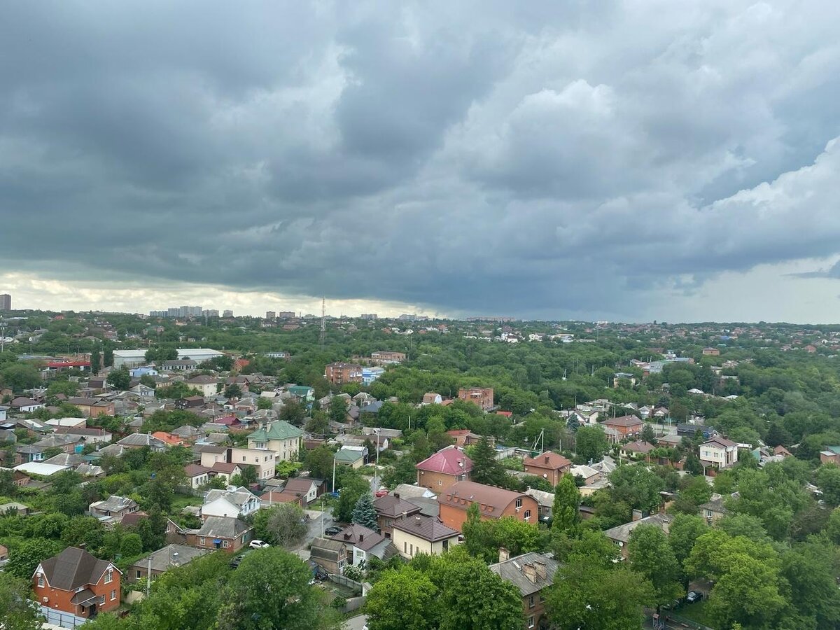 Небо над донской столицей снова затянуло дождевыми облаками. Мощный ливень надвигается на Ростов 27 мая.