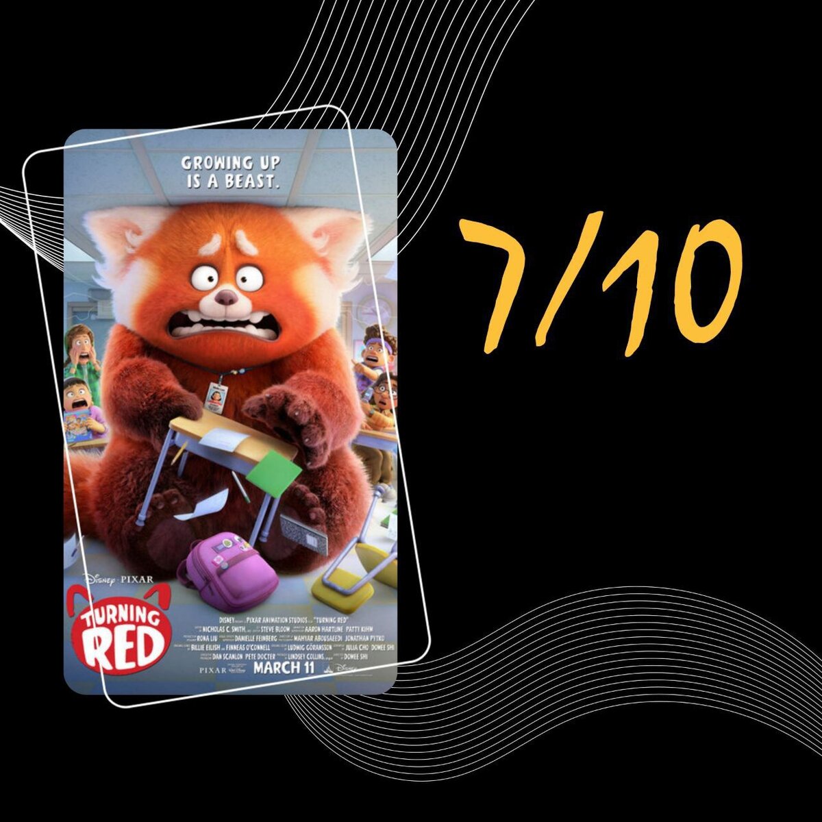 США, 2022, мультфильм, фэнтези, 6+ Торонто, 2002 год. Активная и неунывающая 13-летняя Мэйлинь всеми силами пытается быть первой во всём, чтобы угодить строгой гиперопекающей матери. Семья девочки живёт при храме и поклоняется Богине-прародительнице. Одним прекрасным утром Мэйлинь просыпается и вместо привычного отражения в зеркале видит красную панду — теперь, когда она волнуется, злится или испытывает другие сильные эмоции, превращается в большого зверя. Мало того, что это происходит в самые неподходящие моменты, так ещё и посещение концерта обожаемой Мэйлинь и её подружками мальчиковой группы 4-Town оказывается под угрозой. На каникулах я решил сесть за просмотр нового мультфильма от моей любимой мульт-студии Pixar. Я обожаю смотреть мультфильмы Pixara, они дают очень важный жизненный посыл. Правда не всегда понятно, но потом когда читаешь в чём смысл, бегут мурашки по коже. Расскажу, как пришла моя любовь к Pixar. Всё началось с мультфильма "Головоломка", пошёл в кино, я ничего