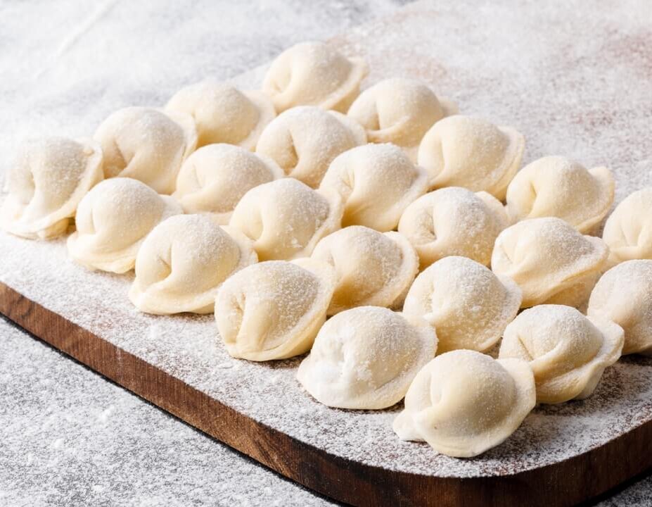 лепешки из теста и вкладывают начинку для каждого пельменя в отдельности. Начинка, положенная в центр тестяных кружков, хорошо и удобно обтягивается, пальцем слегка надавливается по центру и получает форму пухленьких полумесяцев, концы которых легко соединяются, придавая пельменю его классическую форму. И никаких обрезков! Именно так
