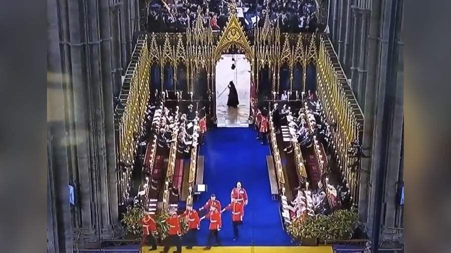 6 мая 2023 года короновали Чарльза (на немецкий манер - Карла) 3. Очень хотелось тогда сразу в тот же день и видео глянуть и сюда ссылку на него выложить, но увы... Ну да ладно... В общем, а почему бы и не быть им с Марса. Даже одежды солдат - в красных тонах, словно в память о планете, с которой когда-то давным-давно... в далёкие-далёкие времена... прилетели сюда, предполагают, что 65 миллионов лет назад, когда произошло кем-то истребление динозавров на Земле... После церемонии коронации Чарльза в Twitter стал популярным видеоролик, на котором запечатлен в проходе Вестминстерского аббатства кто-то в чёрном плаще и капюшоне с палкой в руках. Пользователям фигура напомнила смерть с косой. Газета.Ru Отмечает, что фигурой оказался церковный служитель, который помогает в проведении служб и иногда несет жезл перед епископом или священником. А как на самом деле? Церемония передачи трона Карлу III уже состоялась 10 сентября прошлого года в Сент-Джеймсском дворце в центре Лондона. Сын Елиза
