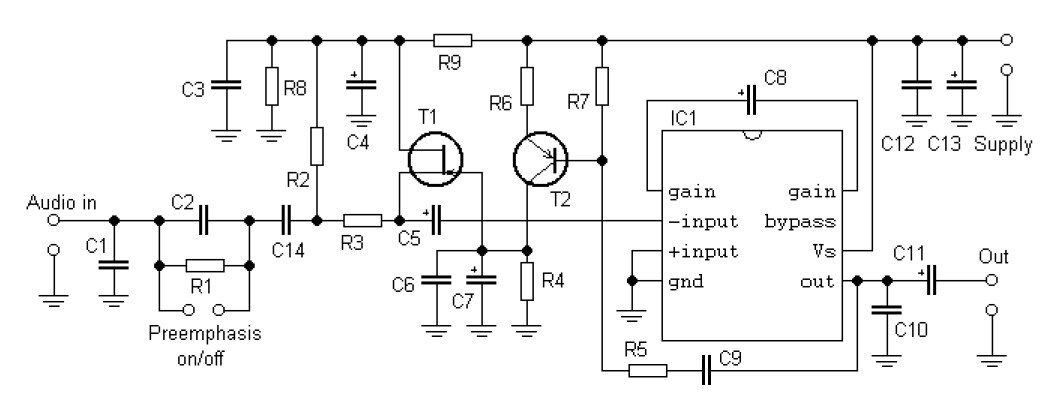 Добрый день дорогие друзья. Я как всегда продолжаю просматривать зарубежные радиолюбительские сайты, форумы, блоги и журналы, и с самым интересным что мне там попадается я знакомлю моих читателей. Сегодня мы с Вами расмотрим ограничитель амплитуды НЧ сигнала для АМ – передатчика. Радиолюбители знают что звуковые сигналы, такие как музыка или речь, имеют большой динамический диапазон. Есть тихие и громкие участки. Эти аудиосигналы не слишком хороши для передатчика, которому требуется аудиосигнал с постоянным уровнем на входе. Ограничитель – это устройство, ослабляющее громкие сигналы и усиливающее тихие. На его выходе сигнал с постоянным уровнем. Технические характеристики: Список применяемых деталей Резисторы: Конденсаторы: Электронные компоненты : Собран ограничитель на печатной плате размером 45х35 мм Расположение деталей на печатной плате Ограничитель амплитуды НЧ сигнала для АМ – передатчика в собранном виде На этом у нас сегодня все.