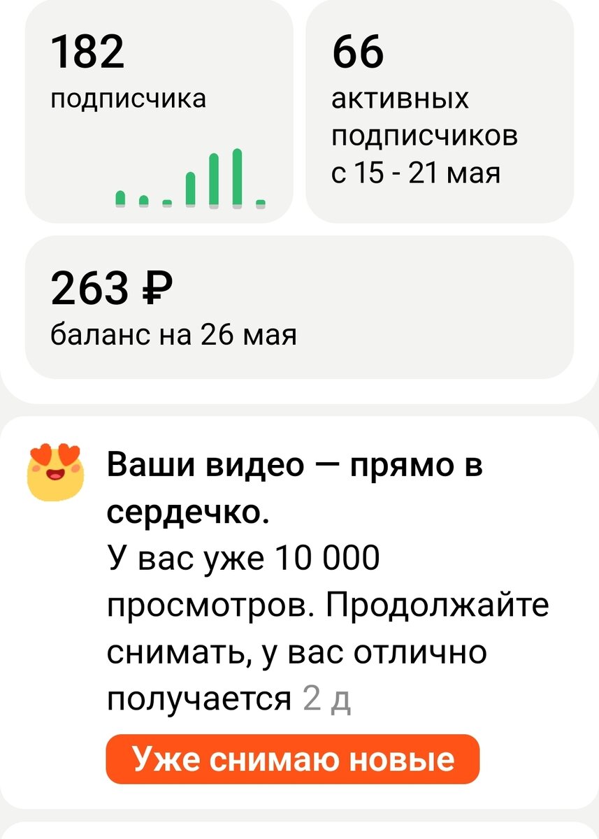 Третий канал дался мне намного легче, чем предыдущие, на монетизацию вышла уже две недели, что безусловно радует) Получив вот это послание, захотелось поделиться радостью! Согласитесь , что может быть приятнее, чем похвала! Да и пофиг что ее шлют всем)) Добавлю еще несколько достижений: За что я люблю Дзен, блогером может стать любой желающий! Не умеешь снимать видео? Не проблема, пиши статьи, или посты. Со временем, можно всему обучиться, если конечно есть большое желание) Вспоминая первые свои видео, я краснею, но это опыт! Р. S. Даже если вам скажут, что вы снимаете или пишите плохо, не сдавайтесь! Творите для себя, если Вам нравится, то что вы делаете и от этого счастливы, то пусть идут лесом все недовольные!