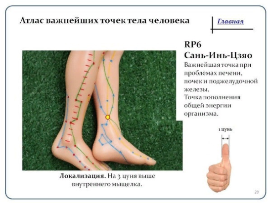 Точка RP 6 Сань-Инь-Цзяо одна из важнейших для решения многих вопросов.