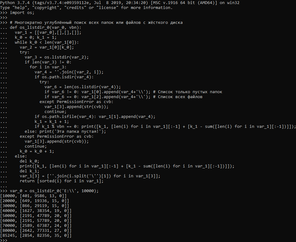 Перед ознакомлением стоит заранее изучить синтаксис языка Python и один из его встроенных модулей - os. Если возникли ошибки касаемо нечитабельности символов с названий папок или файлов, откройте папку по пути на последней строке и попробуйте переименовать путевую строку с ошибкой.