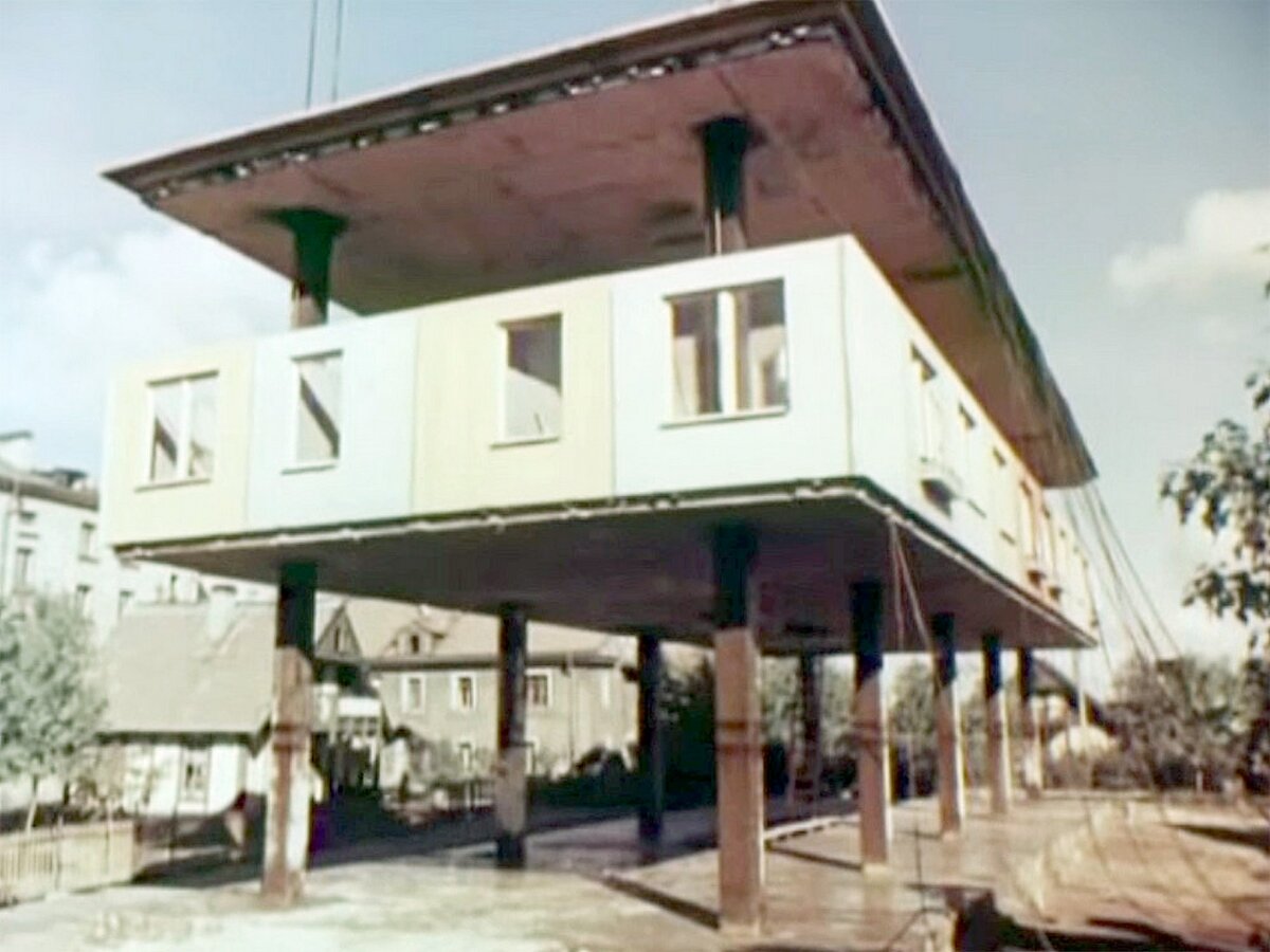 Эксперимент решили провести в 1959 году из соображений экономии. Идейным вдохновителем выступил молодой инженер Ярмолинский Эмиль Иосифович, выпускник Ленинградского инженерно-строительного института. В будущем – известный архитектор, автор многих жилых зданий и здравниц на территории города и области. В прошлом – фронтовик, прошедший всю войну, кавалер ордена Красной Звезды. Экономия заключалась в ненадобности дефицитных в то время подъёмных кранов и отсутствии необходимости постоянного подъёма материалов и оборудования. Потому что этажи собирали на земле. А потом поднимали их гидравлическими домкратами на заранее построенные несущие опоры. Совсем без крупной техники обойтись не удалось: для того, чтобы в конце строительства снять домкраты с крыши, пришлось привлечь вертолёт. Дом на Магнитогорской улице был не одинок, по такой же технологии построили потом 5-этажный дом на Октябрьской набережной. Эксперимент удался, но дальнейшего распространения не получил, и тому были веские причины
