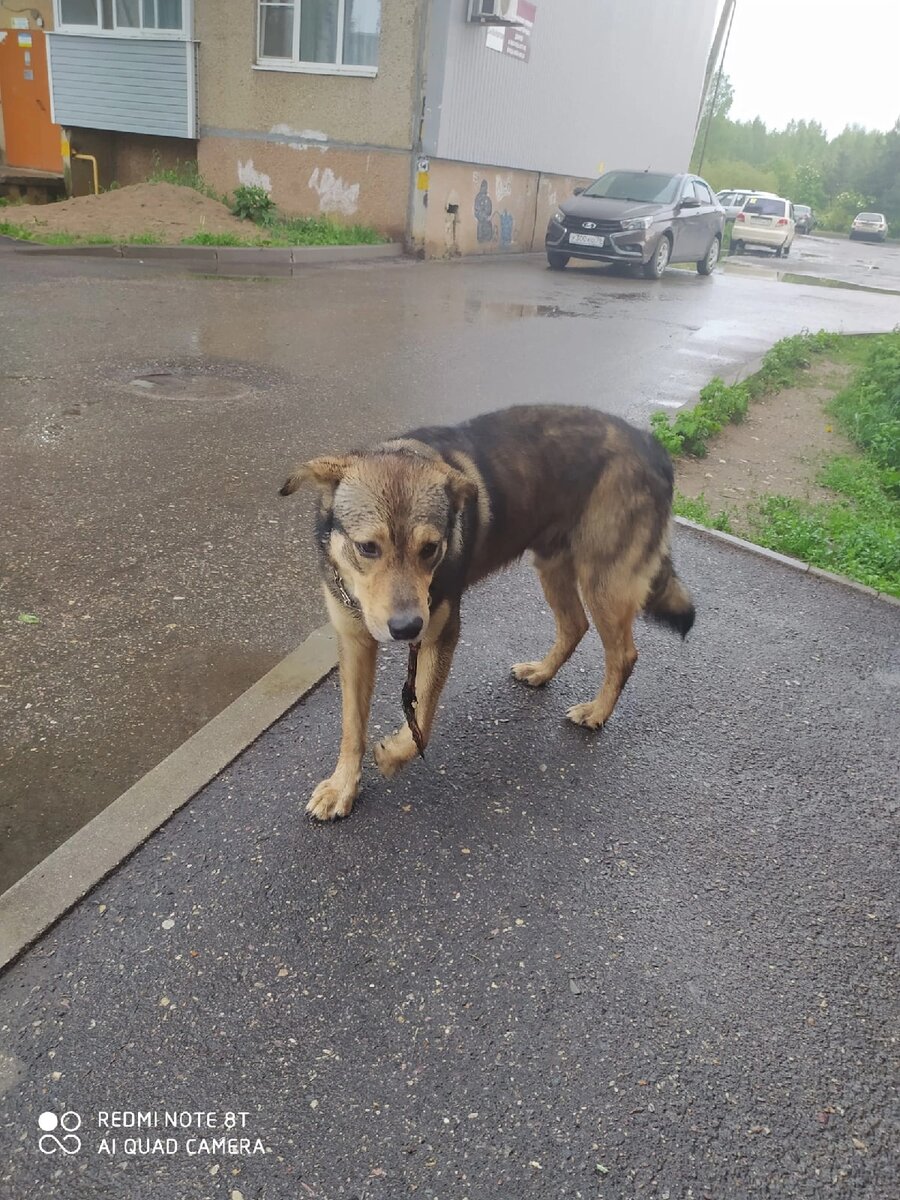 Примерно неделю назад в нашем районе появилась собака с перегрызенным поводком и в строгом ошейнике. Не заметить появление собаки было невозможно. Собака курсировала между домами. Люди из разных домов выносили ей еду и воду. Кормилица кошек каждый день мне говорила, что надо что-то делать..... Надо, но что.... Информация о собаке уже была во всех группах Рыбинска. Забирать некуда, хозяин не объявляется.
